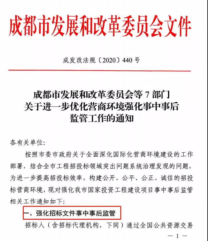 近日,成都市发改委、住建局、经济和信息化局、规划和自然资源局、交通运输局、水务局和农业农村局等7部门下发2份文件,主旨为加强招投标的监管。